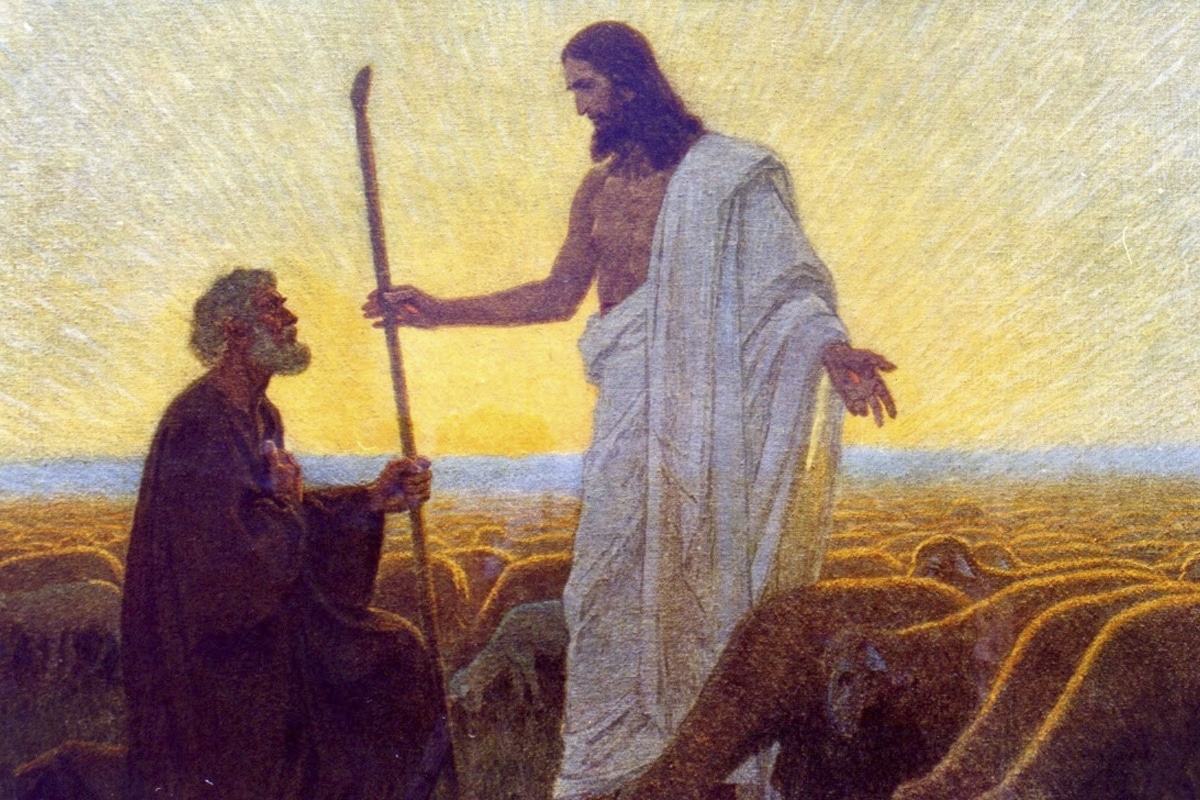 En el diálogo del amor, Jesús habla con Pedro con su patronímico: “Simón, hijo de Juan”, como retomando la historia desde el inicio y dándole un toque de solemnidad. Al concluirlo, todo pareciera estar comenzando de nuevo: “Sígueme”. Se le confían las ovejas y las tareas de alimentarlas y pastorearlas, pero recordando antes que es discípulo y que el verdadero Señor de las ovejas es Jesús.