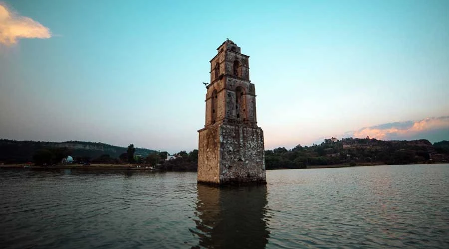 La parroquia de San Pedro Apóstol, donde el héroe mexicano y sacerdote José María Morelos y Pavón celebró Misas en 1813, se encuentra sumergida bajo las aguas de la Presa Curumuco o “del infiernillo”, en el estado de Michoacán.
