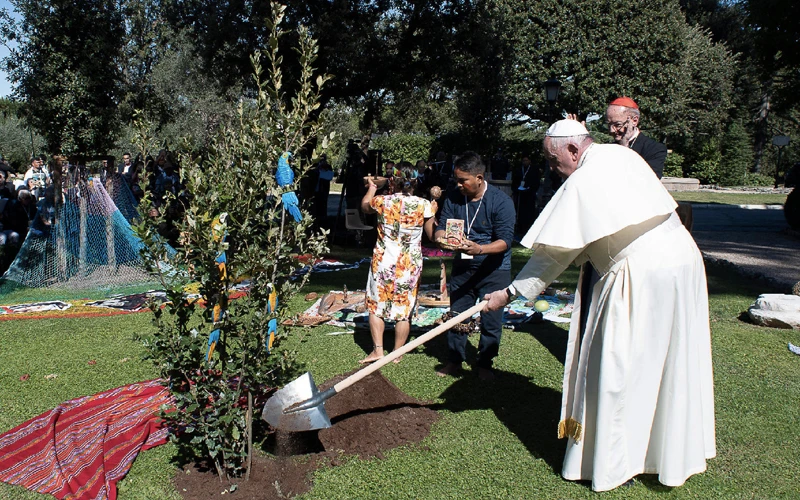 Posteriormente, el Santo Padre plantó el árbol de Asís y durante tal momento fue acompañado musicalmente por el canto de las creaturas de San Francisco.