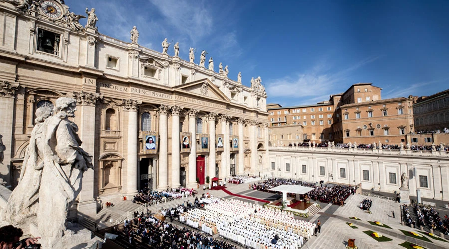 Ante los miles de fieles reunidos en la Plaza de San Pedro, el Pontífice agradeció por los cinco santos “que han caminado en la fe y ahora invocamos como intercesores”.