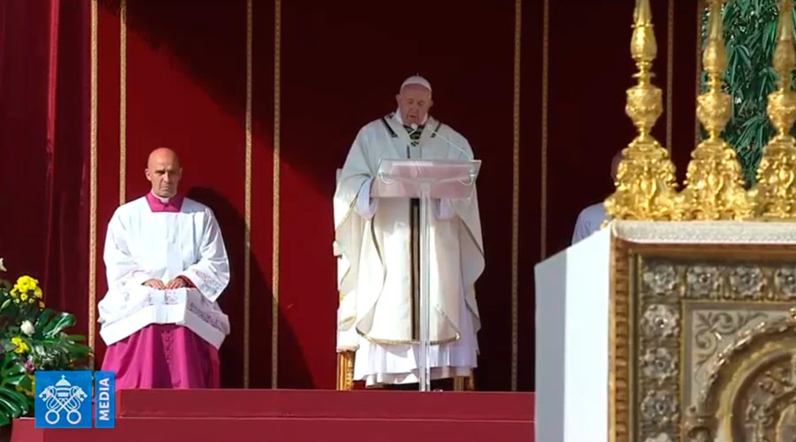 Invocar, caminar, agradecer. Hoy damos gracias al Señor por los nuevos santos, que han caminado en la fe y ahora invocamos como intercesores. Tres son religiosas y nos muestran que la vida consagrada es un camino de amor en las periferias existenciales del mundo. Santa Margarita Bays, en cambio, era una costurera y nos revela qué potente es la oración sencilla, la tolerancia paciente, la entrega silenciosa. A través de estas cosas, el Señor ha hecho revivir en ella el esplendor de la Pascua, en su humildad. Es la santidad de lo cotidiano, a la que se refiere el santo Cardenal Newman cuando dice: «El cristiano tiene una paz profunda, silenciosa y escondida que el mundo no ve. […] El cristiano es alegre, sencillo, amable, dulce, cortés, sincero, sin pretensiones, […] con tan pocas cosas inusuales o llamativas en su porte que a primera vista fácilmente se diría que es un hombre corriente» (Parochial and Plain Sermons, V,5). Pidamos ser así, “luces amables” en medio de la oscuridad del mundo. Jesús, «quédate con nosotros y así comenzaremos a brillar como brillas Tú; a brillar para servir de luz a los demás» (Meditations on Christian Doctrine, VII, 3). Amén.