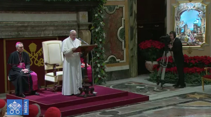 A ustedes aquí presentes, a sus colaboradores, a todas las personas que prestan servicio en la Curia, como también a los Representantes Pontificios y a cuantos colaboran con ellos, les deseo una santa y alegre Navidad. Y a estos saludos añado mi agradecimiento por la dedicación cotidiana que ofrecen al servicio de la Iglesia. Muchas gracias.