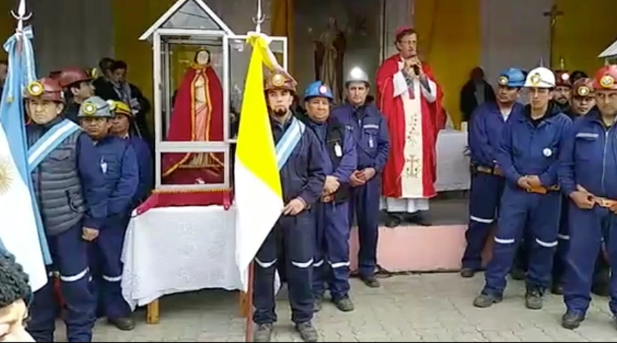 Con la participación de familiares y vecinos de la cuenca carbonífera, al finalizar la Misa el Obispo expresó que gracias a la luz de los cascos de los mineros “ustedes pueden guiarse y seguir adelante”.