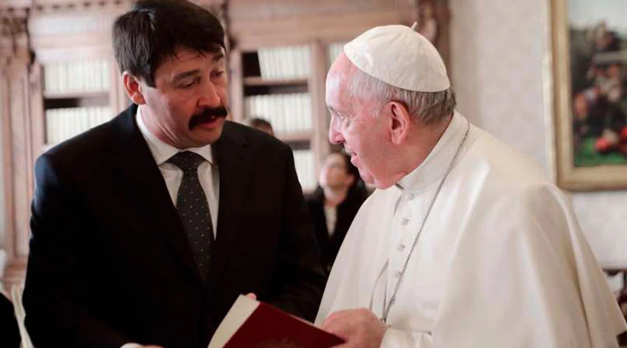 En el tradicional intercambio de regalos, el presidente hizo entrega al Santo Padre de una estatuilla de cerámica de 1907 originaria del sur de Hungría que representa a un fraile en oración.
