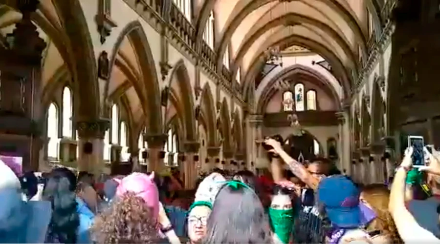 En declaraciones a ACI Prensa, un sacerdote que sirve en la parroquia señaló que las mujeres rompieron ventanas y realizaron pintas, las cuales todavía se encuentran en el lugar.