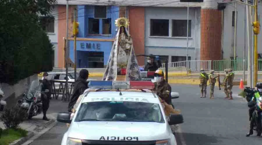 Aproximadamente a las 8:30 a.m. la imagen salió desde la zona de Irpavi hacia el centro de la ciudad sobre una patrulla de la Policía Nacional.