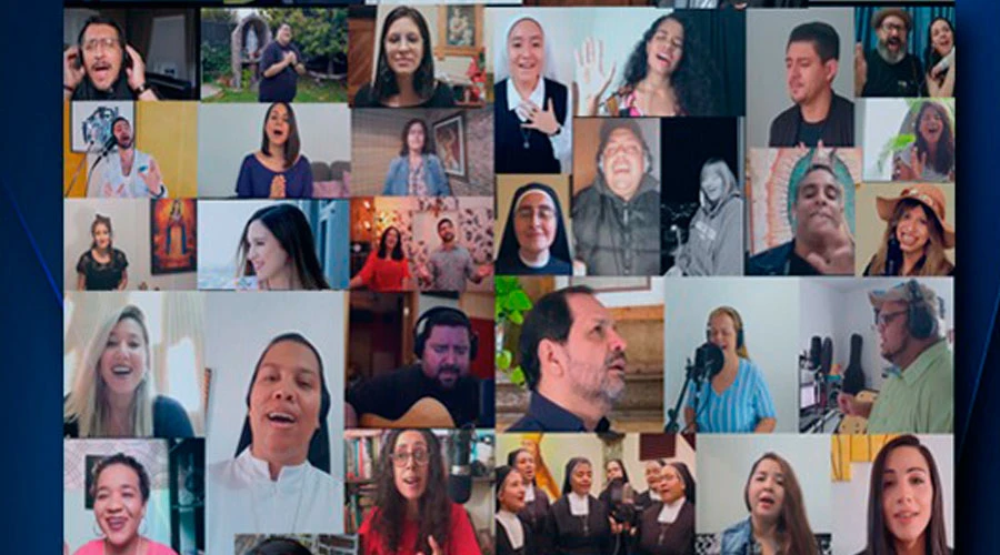 “El mundo está pasando por un momento de prueba, y en aras de llevar esperanza y fortalecer la fe, se logró reunir luego de varias semanas de logística a más 40 evangelizadores y referentes católicos entre músicos cantantes, y consagrados, quienes desde sus casas o parroquias han querido unir sus voces para elevar esta plegaria a través del video de la canción”, señala una nota de prensa de Paz y Bien Music, que compartió el canto en sus redes sociales.