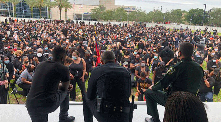 “Mientras la gran multitud caminaba bajo cielos grises, los versos de las Escrituras se intercalaban con los nombres de 100 de las 400 vidas perdidas debido al racismo desde 2014. La caminata comenzó en el Camping World Stadium y continuó durante una milla hasta Division Avenue, en el límite del distrito de Parramore”, señala un artículo de Florida Catholic, el diario oficial de la Arquidiócesis de Miami.