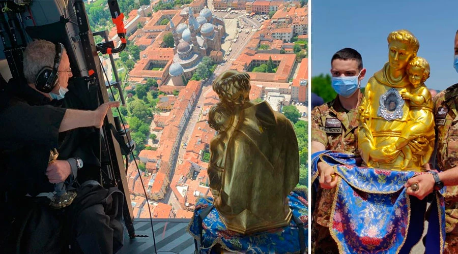 El sobrevuelo, de casi dos horas de duración, se realizó a bordo de un helicóptero del ejército en el que iba el P. Oliviero Svanera, rector de la Basílica de San Antonio, junto con la imagen del santo.