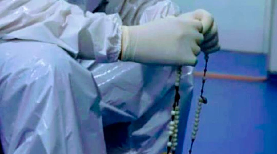 En una foto compartida por el pastor evangélico Luis Alberto Gallego se puede ver a Ramírez, quien trabaja en la Clínica Madre Bernarda de las Hermanas Franciscanas en Cartagena (Colombia), rezando el Santo Rosario antes de ingresar a una sala de operaciones.