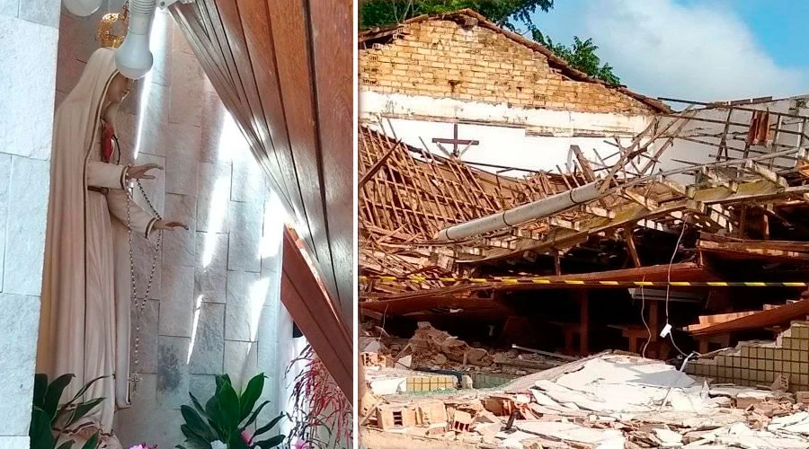La nota de la parroquia también fue publicada en Facebook por el Obispo de Castanhal, Mons. Carlo Verzeletti, quien también compartió algunas fotos como la de la imagen intacta de la Virgen de Fátima entre los escombros.
