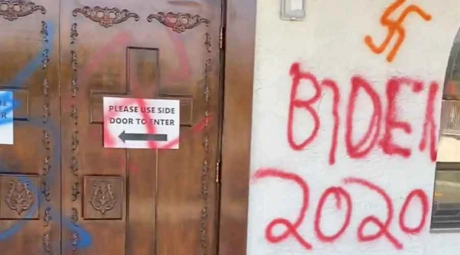 En un mensaje publicado en su página de Facebook, la Catedral Católica Caldea de San Pedro en El Cajon, California, dijo el 26 de septiembre que “esta mañana nuestra amada Catedral fue desfigurada con pentagramas, cruces invertidas, poder blanco, esvásticas, BLM, etc. Nos recuerda rezar por mis hermanos en Irak que están enfrentando persecución”.