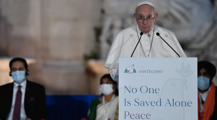 “Estamos juntos esta tarde, como personas de diferentes tradiciones religiosas, para comunicar un mensaje de paz. Esto muestra claramente que las religiones no quieren la guerra, al contrario, desenmascaran a quienes sacralizan la violencia, piden a todos que recen por la reconciliación y que actúen para que la fraternidad abra nuevos caminos de esperanza. De hecho, con la ayuda de Dios, es posible construir un mundo de paz y así salvarse juntos”, indicó el Papa.