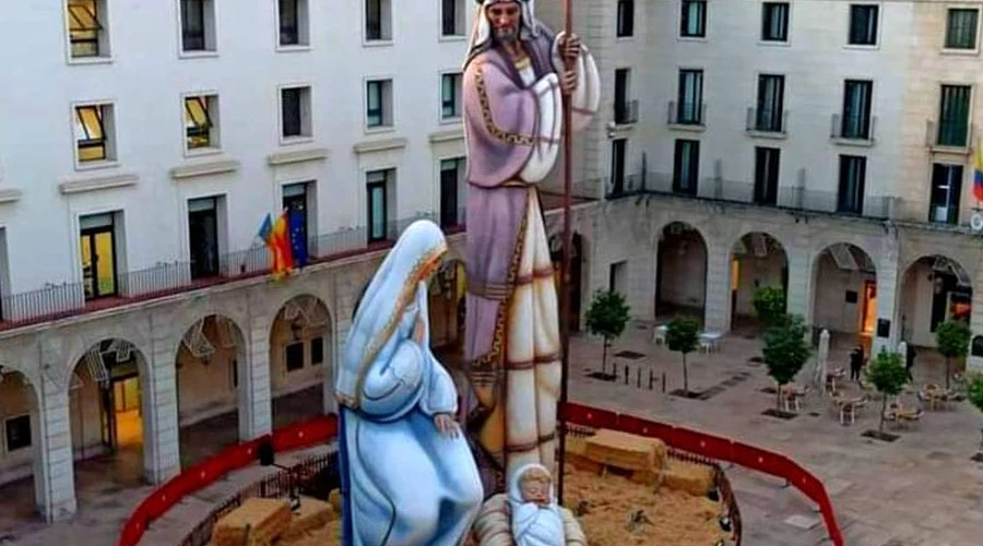El mega belén de Alicante está situado en la plaza del Ayuntamiento y está mantenido por una estructura metálica para que pueda soportar sin peligro la lluvia, el viento y la salinidad del ambiente.