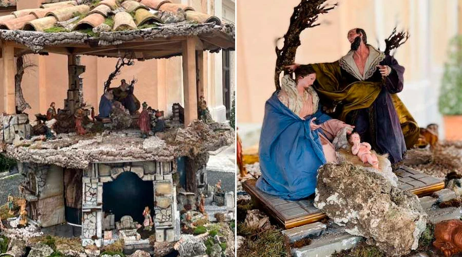 Enfrente de esa iglesia hay belén realizado con material recuperado del reciclaje por los jardineros que cuidan los Jardines Vaticanos.