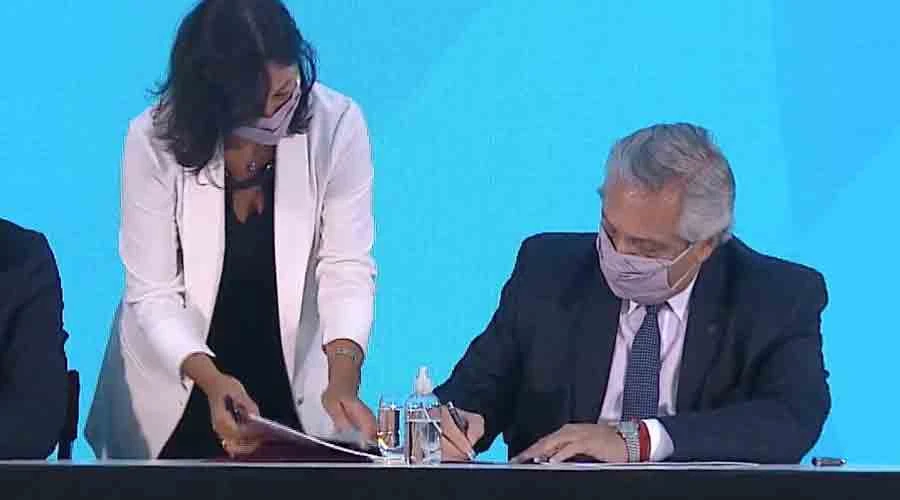 En la ceremonia de promulgación, realizada en el Museo Bicentenario de la Casa Rosada, Alberto Fernández dijo que cumplió su palabra y que esta ley hace a Argentina “una sociedad un poco más igualitaria, un poco más justa”.
