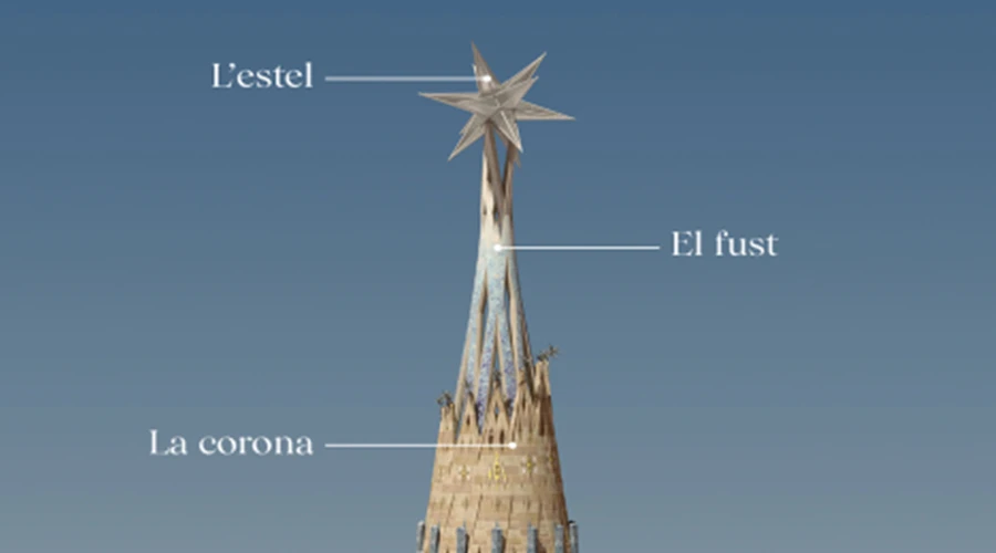 — La Sagrada Família (@sagradafamilia) April 16, 2021Y por último la corona de la torre, que será una estrella de 12 puntas y 7,5 metros de diámetro. Estará hecha de vidrio texturado y se iluminará desde dentro.