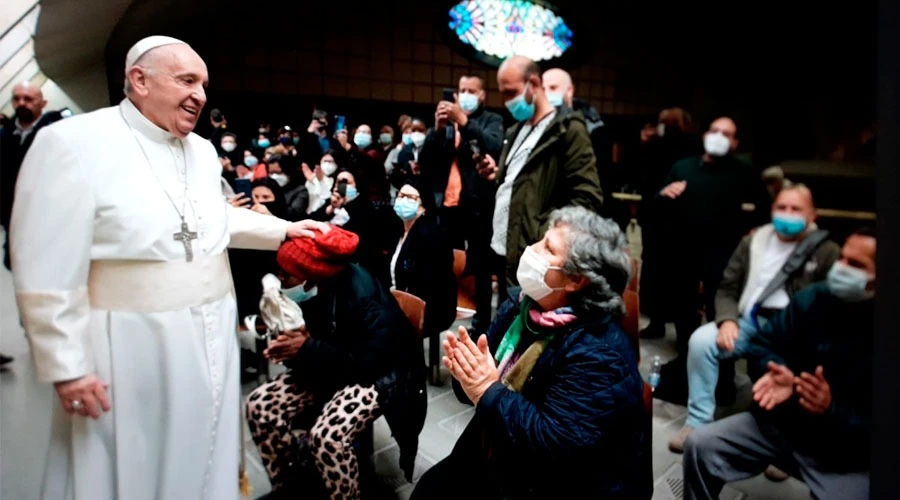 Esta mañana, el Papa Francisco acudió al atrio del Aula Pablo VI para saludar a algunas de las personas pobres mientras que esperaban ser vacunadas. La gente necesitada estaba acompañada por voluntarios de asociaciones romanas, entre ellos, religiosas Misioneras de la Caridad.