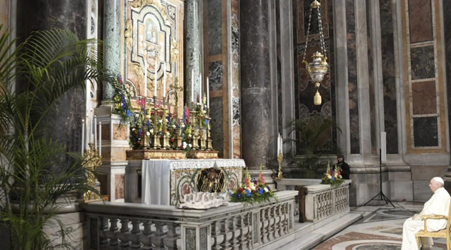 El Santo Padre rezó los misterios gloriosos del Rosario ante la Virgen del Socorro, que se encuentra en la Capilla Gregoriana de la Basílica de San Pedro, junto a casi 200 fieles.