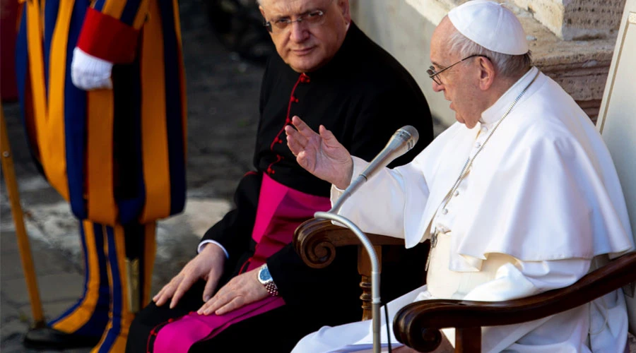 Al finalizar la Audiencia General de este miércoles 26 de mayo desde el Claustro de San Dámaso del Palacio Apostólico del Vaticano, el Santo Padre señaló que “en este mes de mayo, en el que veneramos a la Santísima Virgen María, confío a su intercesión a todas las madres, sobre todo a las que esperan el nacimiento de un hijo”.