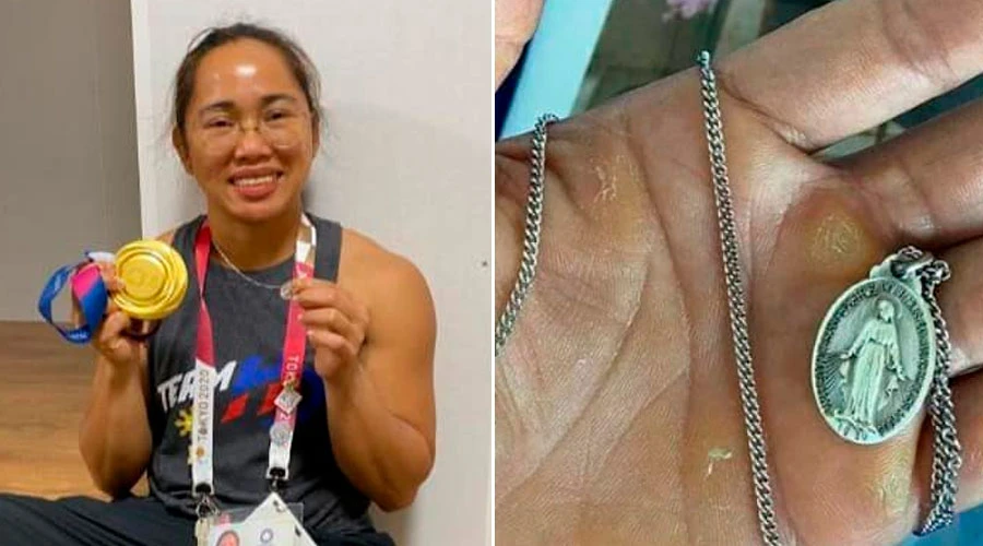 Hidilyn Diaz got two medals, the Olympic gold and the Miraculous Medal of Our Lady.