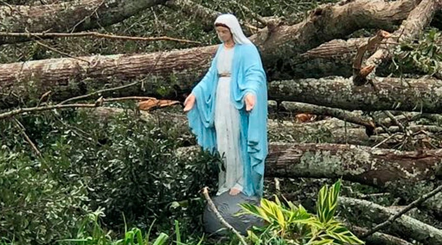 En medio de la devastación dejada por el huracán, la comunidad de la iglesia St. Hubert captó en una foto cómo una imagen de María permanecía en pie y sin daños.
