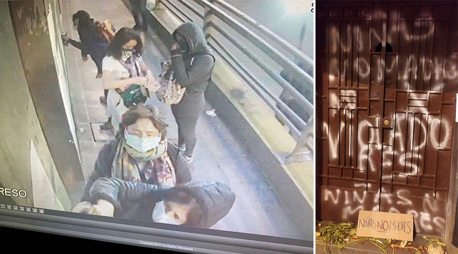 Según se observa en las imágenes del 27 de octubre, los exteriores de la sede episcopal fueron pintados con graffitis y se pegaron pancartas con varios mensajes proaborto.