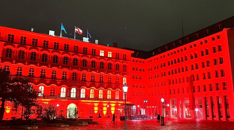 #RedWeek En estos momentos se tiñen de rojo la Catedral de San Esteban en Passau, #Alemania la Casa del Parlamento, el Ministerio del Interior y la Catedral de San Esteban, en Viena, #Austria Por los #cristianosperseguidos y por la #LibertadReligiosa 🙏 pic.twitter.com/VP6mWFCwU2