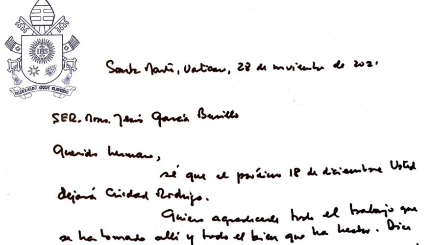 El Papa quiso agradecerle a través de una carta “todo el trabajo que se ha tomado allí y todo el bien que ha hecho”.